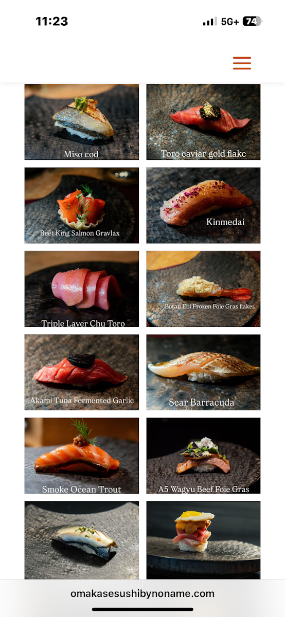 The menu at Omakase Sushi by No name offers a refined and thoughtfully curated dining experience, centered around traditional Japanese omakase with creative touches. The focus is on delicate, seasonal ingredients served in a series of artfully prepared courses that invite diners to savor each bite slowly, making it an ideal choice for an intimate dinner or a special occasion.